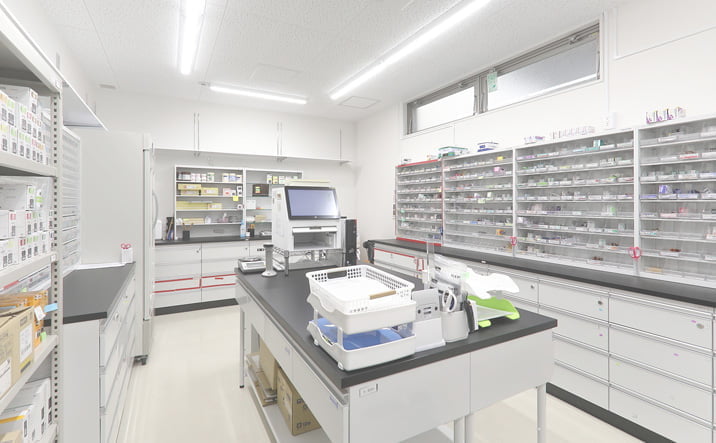 対人業務強化のため、全自動水剤分注機や散薬調剤ロボットなど、最新の調剤機器を積極的に導入し、業務効率化を図っています。また、監査システムを導入し、徹底したリスクマネジメントに取り組んでいます。
