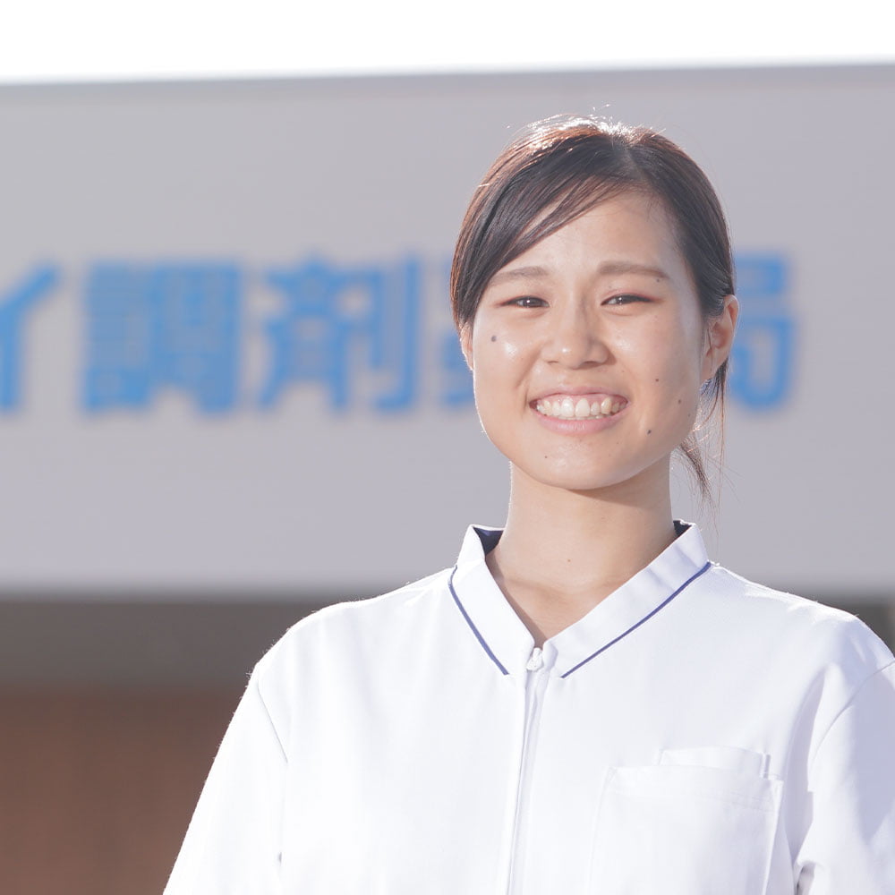 調剤薬局の魅力は、一人の患者様と長く関われることだと思います。カメイ調剤薬局での実務実習を通して、社員のみなさんが楽しそうに働く様子や患者様一人ひとりに寄り添う姿に憧れました。投薬前に監査システムを通すのでミスを防げる安心感もありましたし、カメイは総合商社なので他部署と一緒に研修を受けることができ、薬剤師としての視野を広げられる期待もありました。就職活動の中で、地元へのUターンよりも、この会社に入社したいと強く思いました。