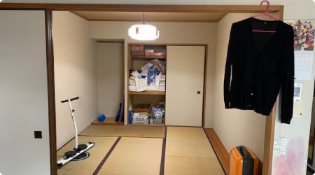 畳をフローリングに替えることで、リビングとの一体感が感じられるようになりました。 段差も解消されたため、お掃除の手間も無くなり、 押入れをクローゼットに変え、収納スペースも広がりました!