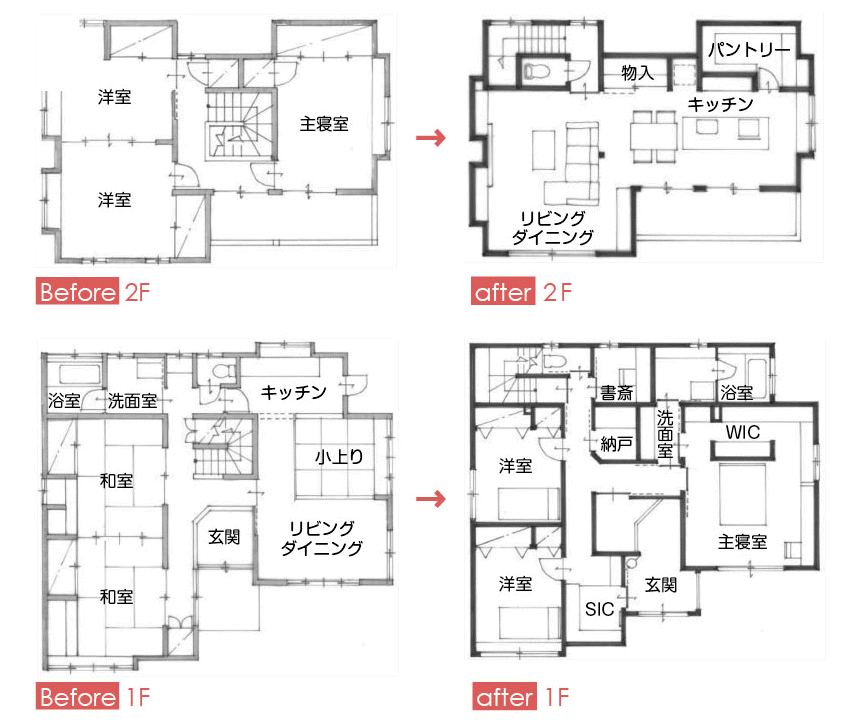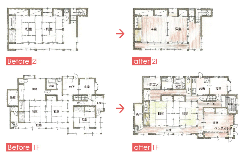 古くなってしまった家も、活用できる部分は上手に残し、もっと家族が使いやすいレイアウトへと全面リフォーム。
