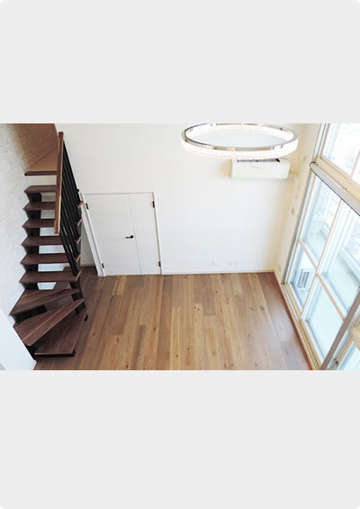 天井裏を有効活用し広々とした空間へと変化をとげた、マンション最上階のお宅。