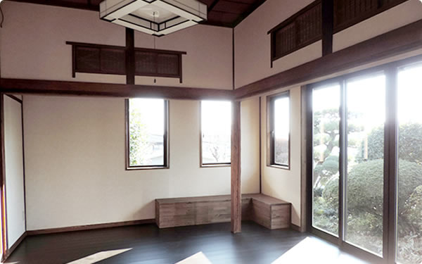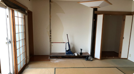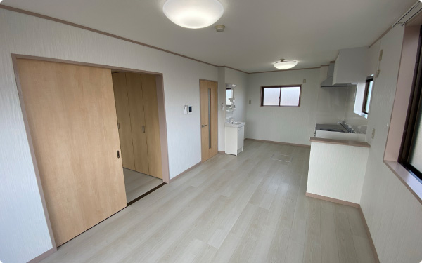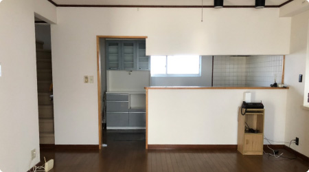 狭いリビングと和室の間を解消することにより、広いLDKを手に入れました。