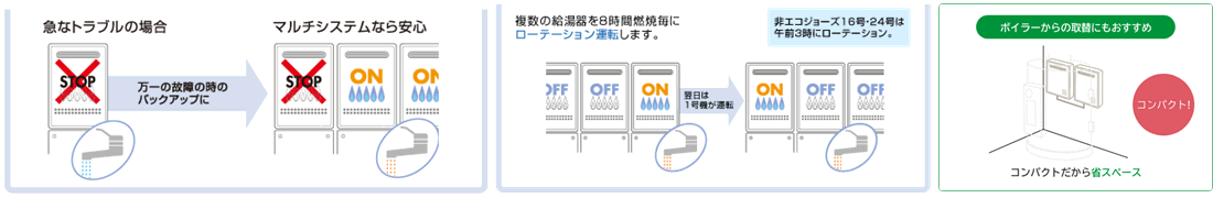 給湯ニーズに合わせ、1~24台の連結設置が可能